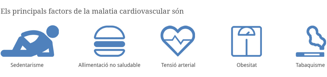 La malaltia cardiovascular és la principal causa de mort a Espanya i arreu del món. L'obesitat, l'alimentació no saludable, el tabaquisme, la inactivitat física i la tensió arterial elevada són alguns dels principals factors de risc1. Tot i que aquests cinc aspectes no sempre poden ser modificats, fins al 80% de la malaltia podria evitar-se si es frenessin els factors de risc relacionats amb l'estil de vida, com ara la inactivitat física, el consum de tabac i els mals hàbits alimentaris2,3,4,5.